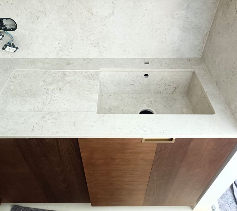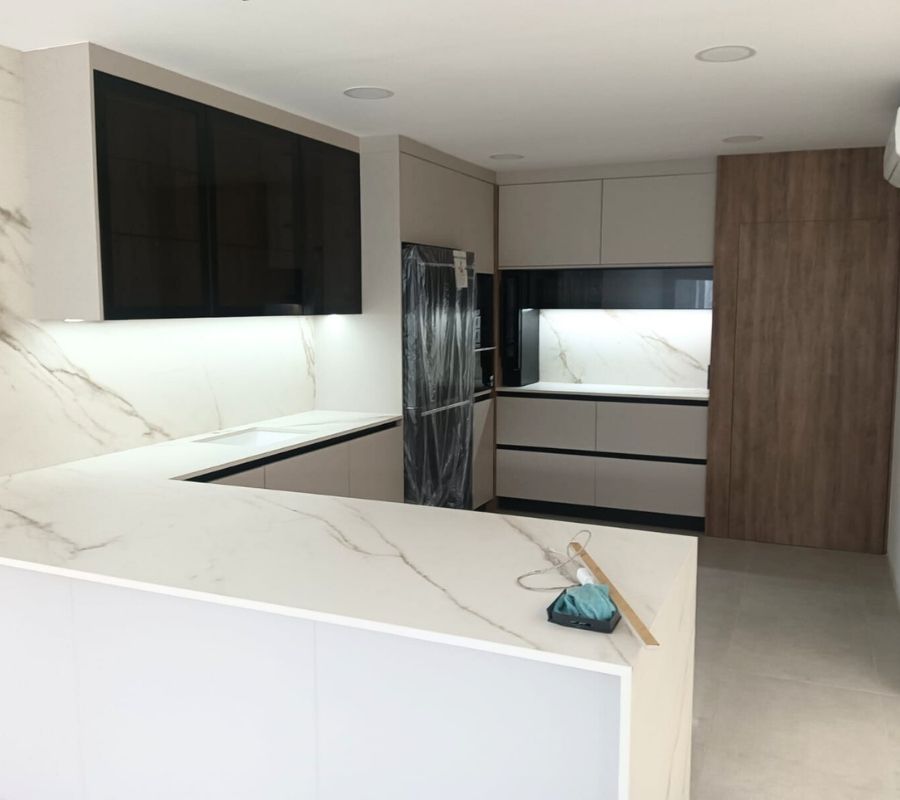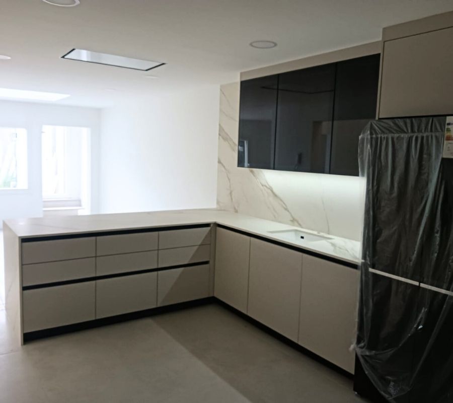 Una nueva vida para la cocina de una casa particular. Un rediseño completo de la misma: encimeras y revestimiento para darle un estilo elegante y minimalista a la estancia.